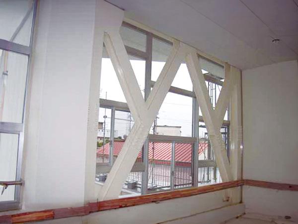 築年数の経過した既存建物に対し、耐震診断結果に基づいた改修・補強工事を実施しています。構造部の補強に加え、ドア・サッシ周辺の耐震対応も含めた総合的な施工を行い、建物全体の安全性を向上させています。これにより、地震発生時の倒壊リスクや設備損傷の低減を実現しました。